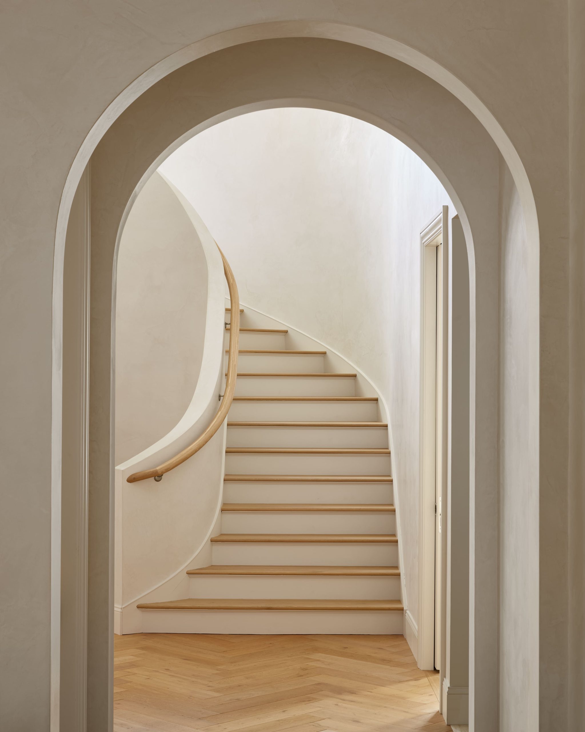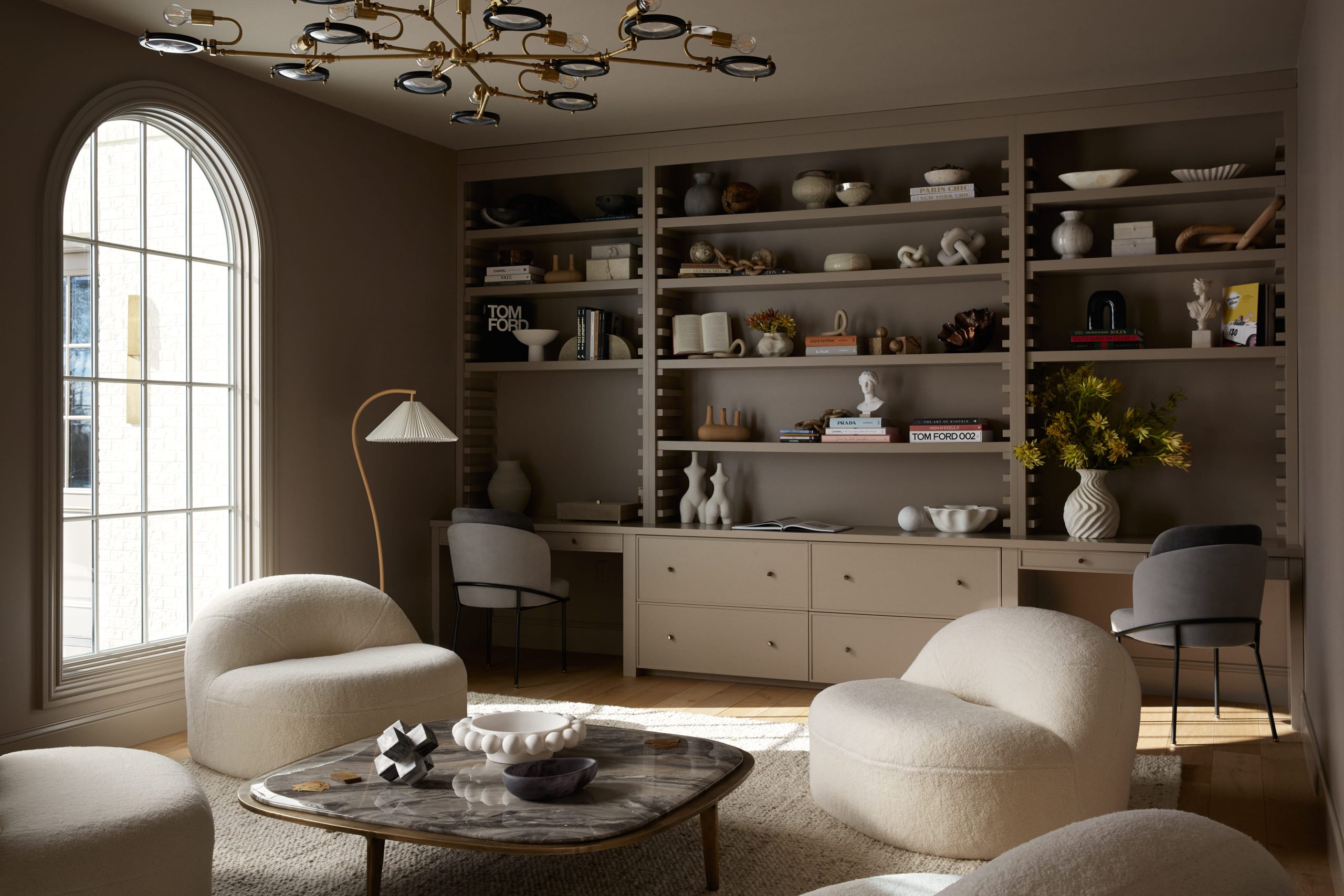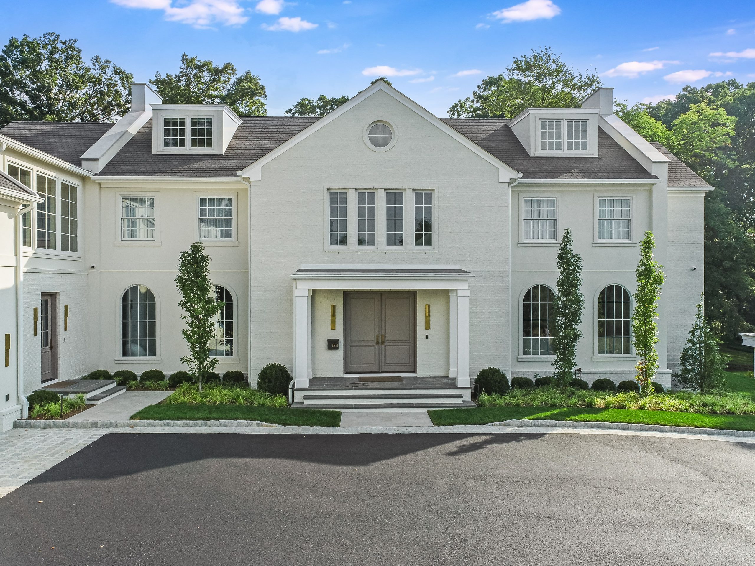 The exterior combines stucco and brick to create architectural depth and avoid the look of a trend-driven new build.