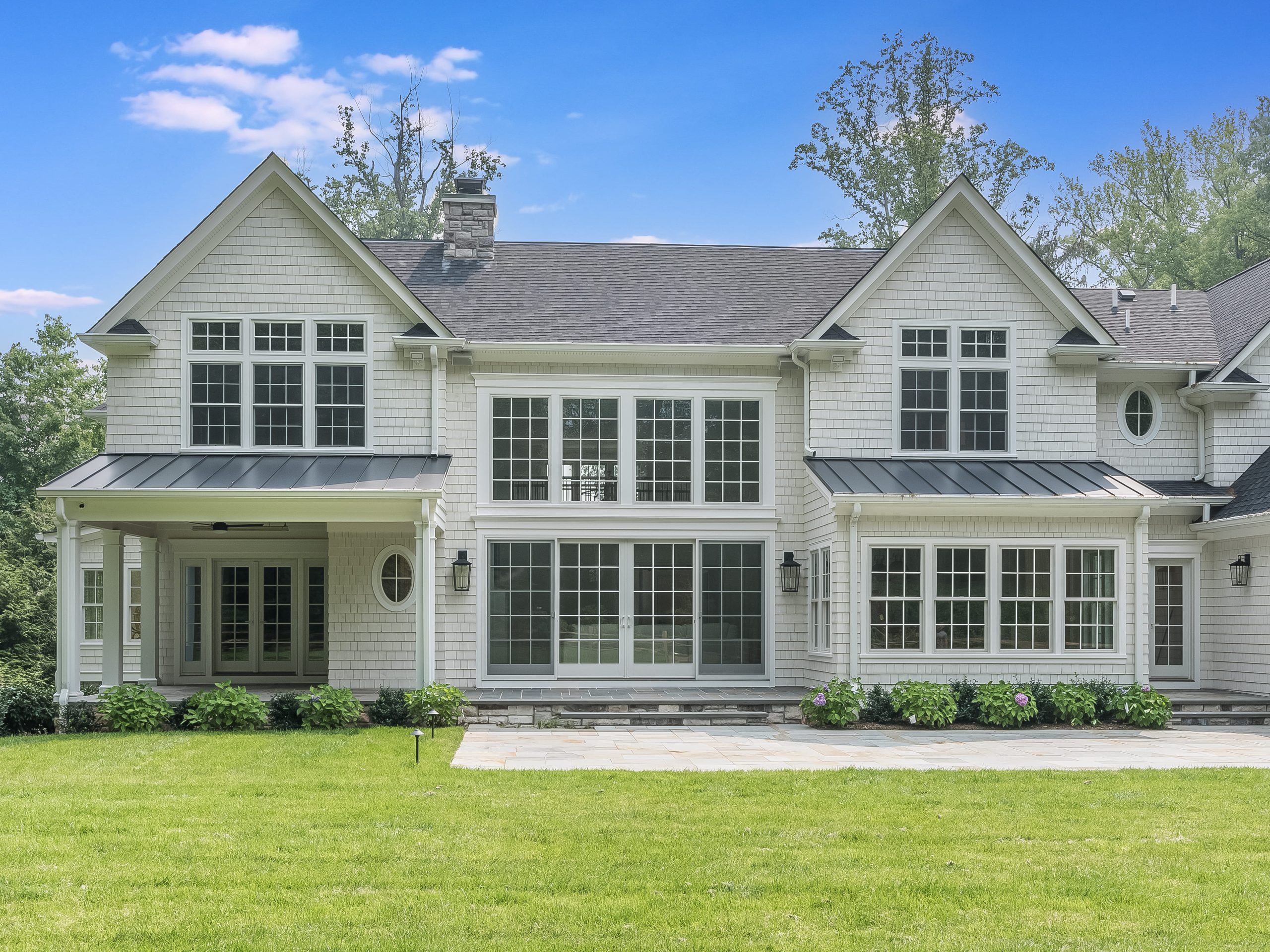 A hallmark of classic architecture tailored for modern living, this beautiful wood shake colonial is defined by its sweeping rooflines and expansive welcoming front porch. A masterful collaboration between Danial Dubinett and Moore Fine Homes, the residence opens at the rear to reveal a soaring two-story family room, covered porch, and intimate bluestone patio — all oriented toward private woods and a rambling brook. The interior narrative, expertly crafted by designer Lara Allen-Brett Design, features a gorgeous paneled dining room, private mudroom, and a timeless kitchen serving six bedrooms and five-and-a-half baths.
