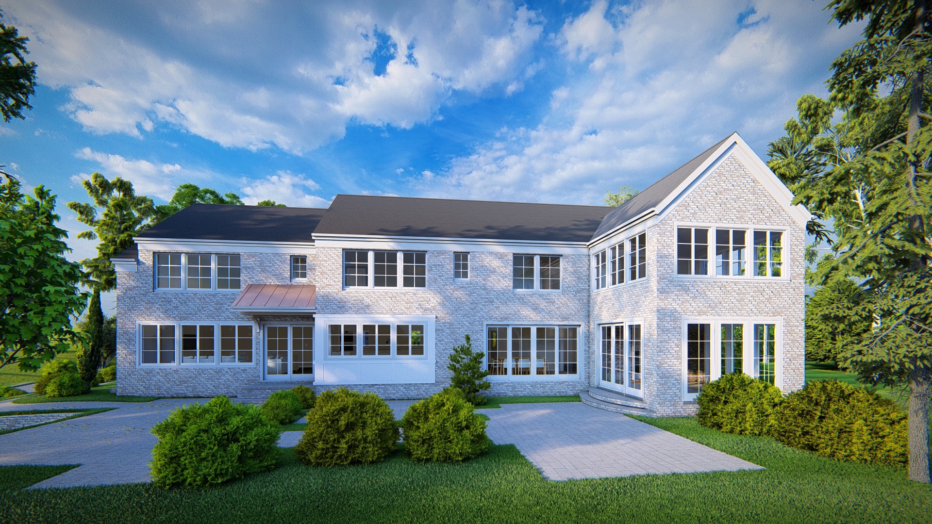 A Design-Build project for clients, involving site selection, design and construction services. A classic brick colonial with magnificent views of North Pond this 6,000 sqft home will feature 5 Bedrooms, 4-1/2 Baths, 2-story foyer and family room, front and rear patios, wine cellar, custom cabinets, built-ins, beams and paneling throughout.