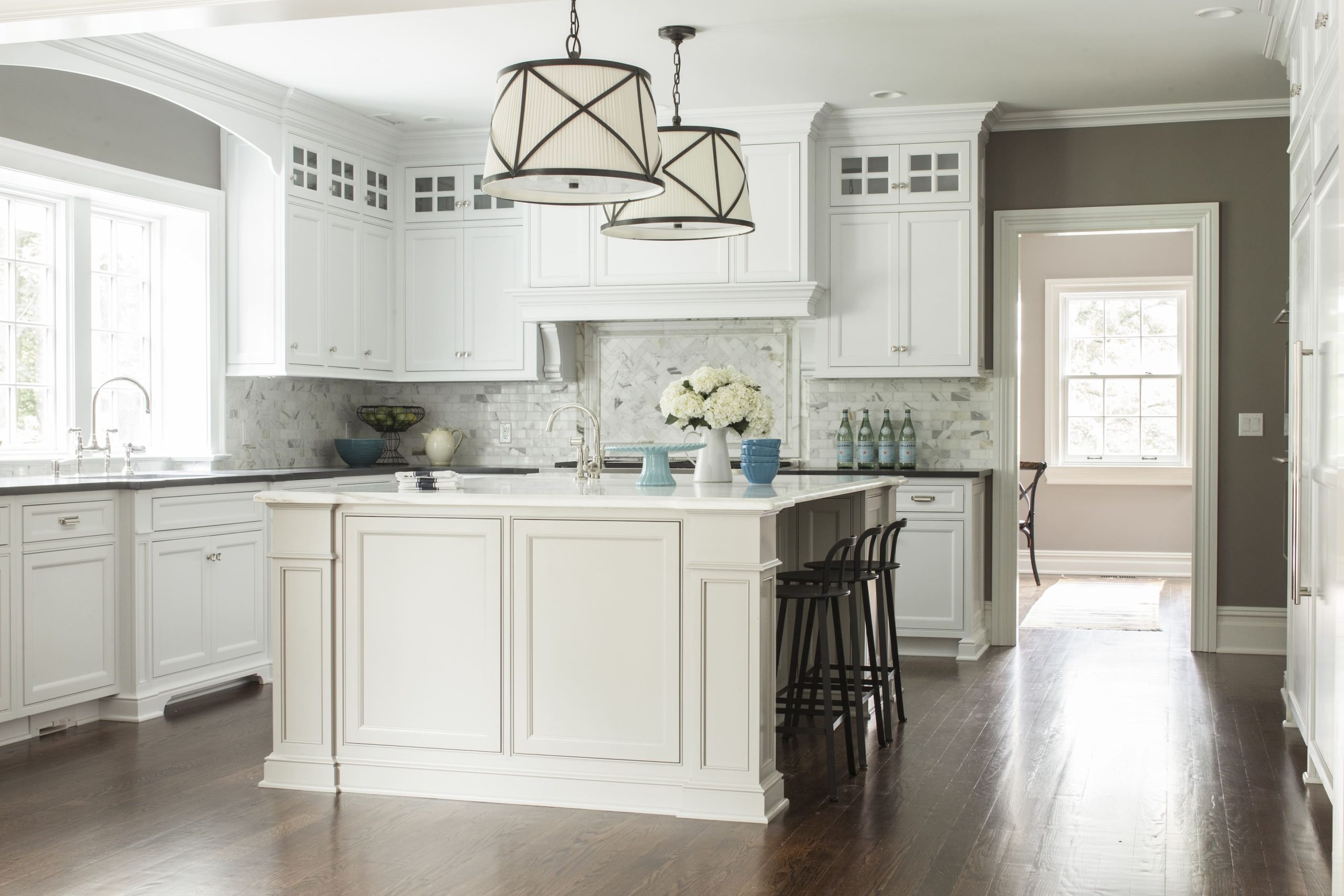 Inspired by the grandeur of an English Country Manor, this estate-level home is distinguished by its extensive hand-laid brickwork, refined copper detailing, and a simulated slate roof. A traditional architectural achievement by Danial Dubinett, the lavish residence features seven bedrooms and six-and-a-half baths, anchored by two stately fireplaces and a custom walk-in wine cellar. The home's sophisticated interior, thoughtfully designed by ML Interiors, is further defined by extensive custom millwork and artisanal finish selections integrated throughout every space.
