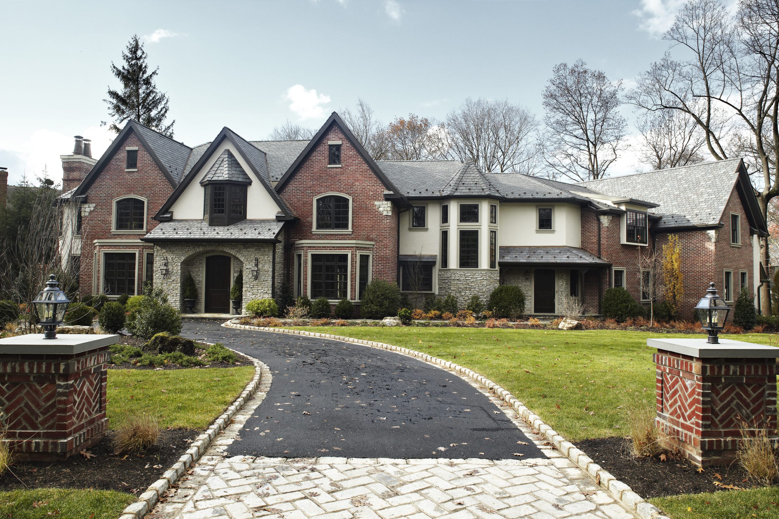 This grand, sweeping estate re-creates the timeless beauty and presence of the traditional Tudor, distinguished by an intricate combination of brick, stucco, and stone. The exterior is masterfully capped with a DaVinci Slate roof and copper chimney pots, signaling a commitment to heirloom-quality materials. Inside, the seven-bedroom, six-and-a-half-bath residence features architectural anchors including two staircases, two fireplaces, a stately paneled library, and a custom-built mahogany wine cellar. The interior, elegantly composed by ML Interior Designs, seamlessly combines premium tile, bespoke millwork, and curated lighting and plumbing selections to create a true timeless masterpiece.